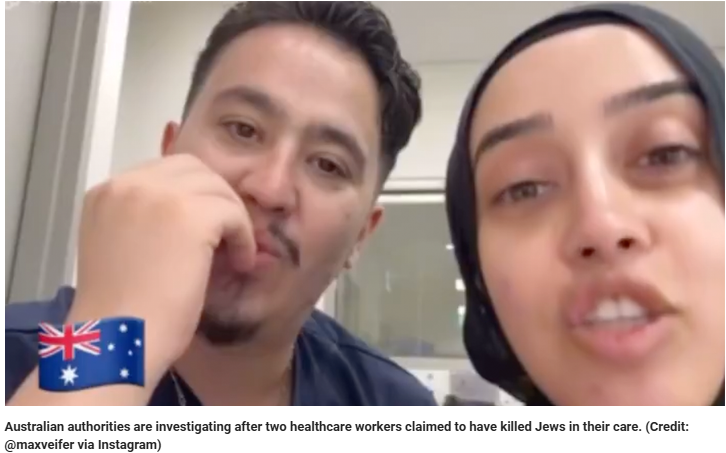 Two Sydney nurses, Ahmad Rashad Nadir and Sarah Abu Lebdeh, were suspended from practicing in Australia after being caught on camera making violent threats against an Israeli man and other Jewish patients. The two, who initially posed as doctors, made antisemitic remarks during an online video chat, including threats to kill Israeli patients at their hospital. Their registrations were immediately revoked by the Nursing and Midwifery Council of NSW, and they are now barred from working in healthcare.