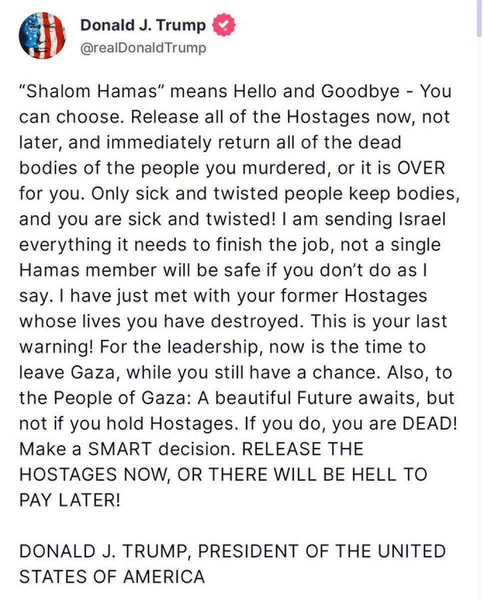 On March 5, 2025, President Donald Trump issued a stern warning to Hamas, demanding the immediate release of all hostages held in Gaza. He threatened severe consequences if his demands were not met, stating that Hamas members "will not be safe" and advising their leaders to leave Gaza. This warning came after President Trump met with eight freed Israeli hostages in the Oval Office.